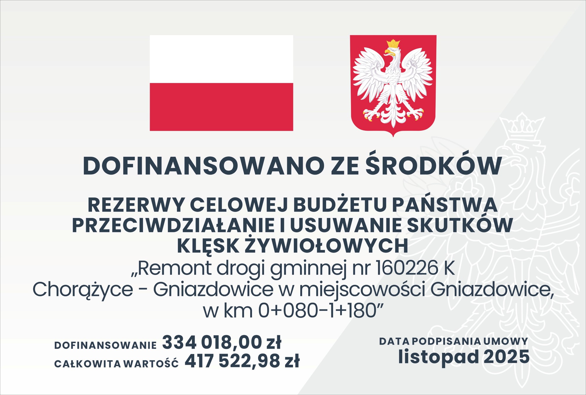 - droga numer 160226 K relacji Chorążyce - Gniazdowice w miejscowości Gniazdowice działka 358 w kilometrażu 0+080 - 1+180